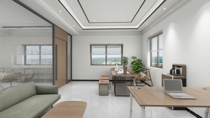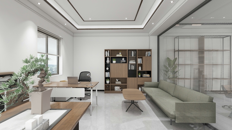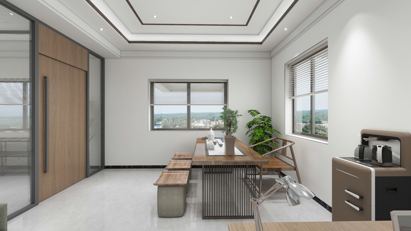 新中式办公室效果图